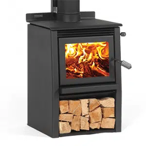 Designed for heating smaller homes and open areas, the Tiny Rad Woody features a surprisingly large volume firebox for a compact sized wood fire. Cook your favourite soup or boil the kettle on the dedicated cooktop. This fire punches well above its weight with a peak heat output of 11kW and provides convenient wood storage. It can also be fitted with a side wetback to assist with your water heating requirements.